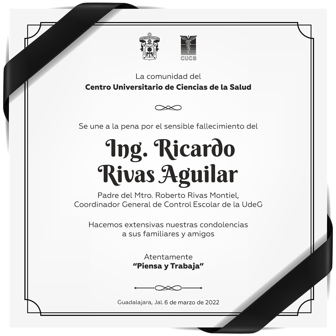 sobre La comunidad del CUCS se une a la pena por el sensible fallecimiento del Ing. Ricardo Rivas Aguilar, padre del Mtro. Roberto Rivas Montiel, coordinador General de Control Escolar de la UdeG