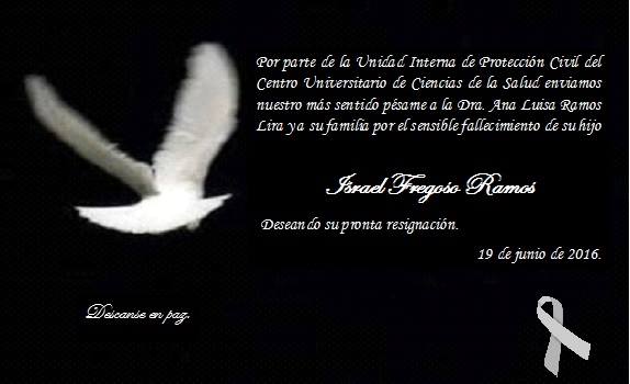 El Centro Universitario de Ciencias de la Salud expresa su más sentidas condolencias al Ing. Arturo Bravo Barba, jefe de la unidad de cómputo y telecomunicaciones, por el fallecimiento de su padre, el Sr. Arturo Bravo González.